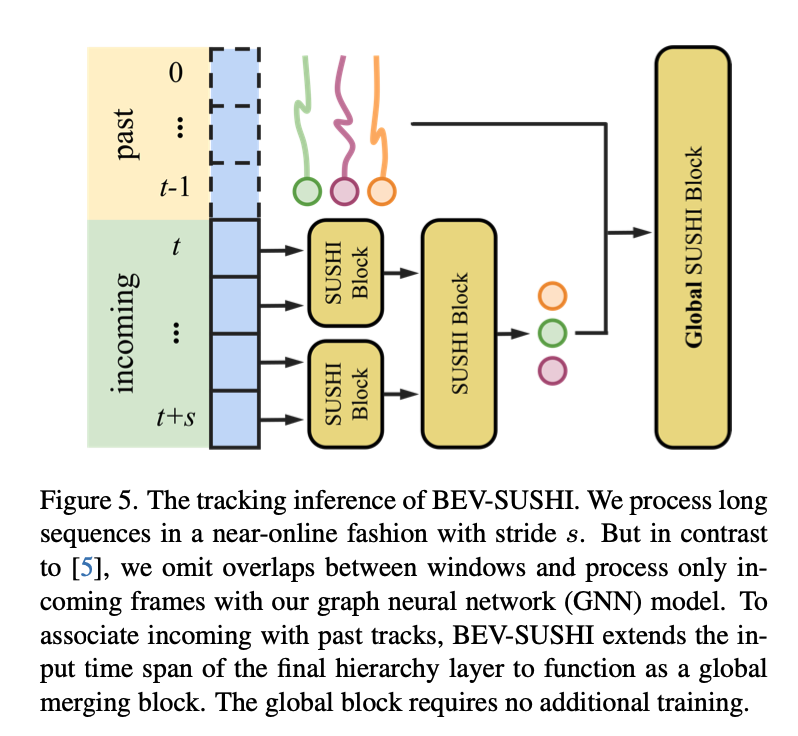 엄밀하게는 SUSHI도 hirachical GNN방법이지만 하나의 큰 graph에서 작동하지만 BEV-SUSHI는 그래프 자체를 window 단위로 쪼개서 GNN을 진행합니다. 그리고 맨 상위에 global block을 병합합니다.